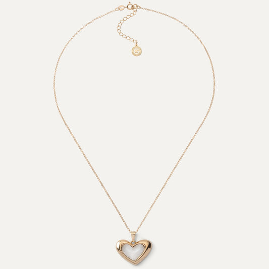 Collar de corazón asimétrico blanco de resina, plata 925 bañada en oro amarillo NUEVO ROMÁNTICO
