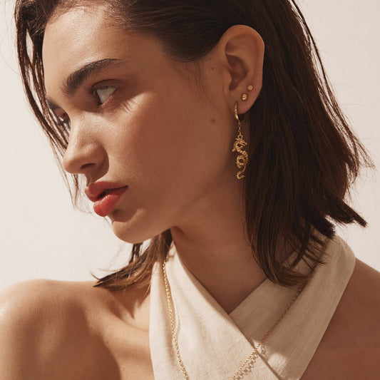 Boucles d'oreilles dragon, argent sterling 925 plaqué or jaune BALI SUN