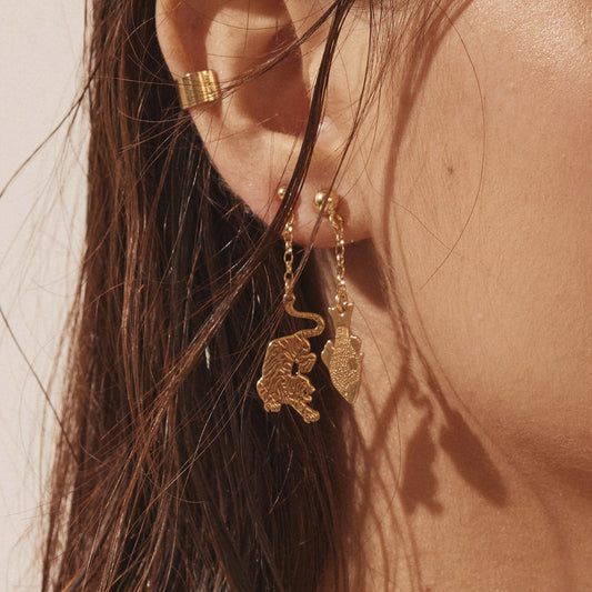 Boucles d'oreilles tigre en argent plaqué or jaune BALI SUN