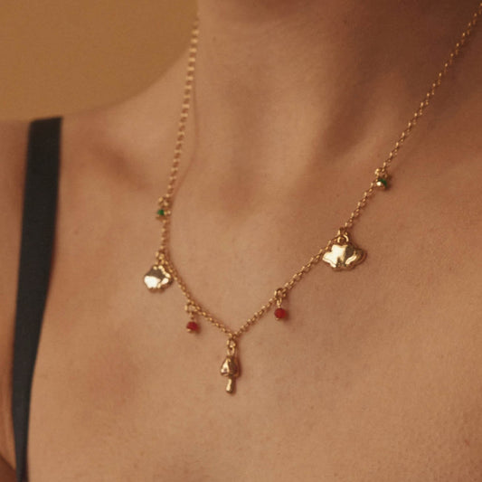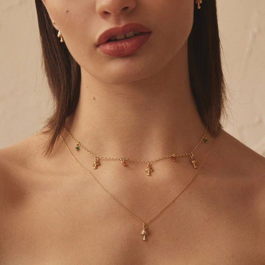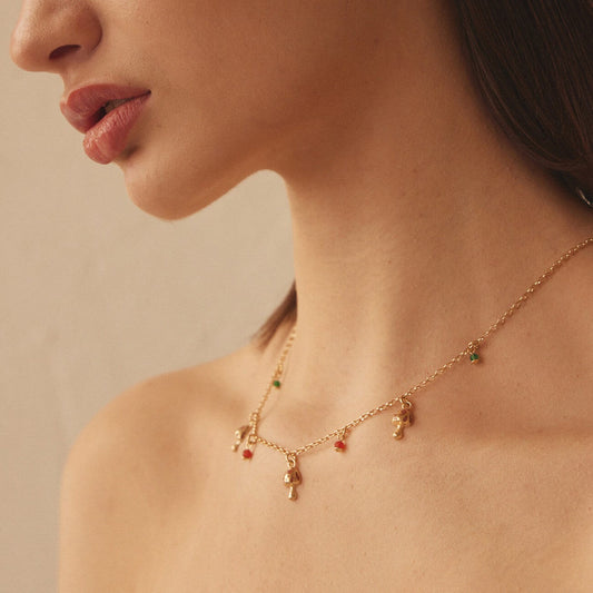 Collier avec pendentif champignon et pierres naturelles, argent sterling 925 plaqué or jaune BALI SUN