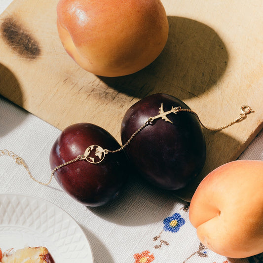 Bracelet - Globe et avion, argent 925 plaqué or jaune VOYAGE