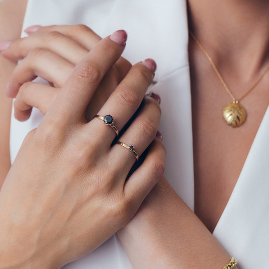 Bague avec diamant de 6 mm, argent 925 plaqué or jaune
