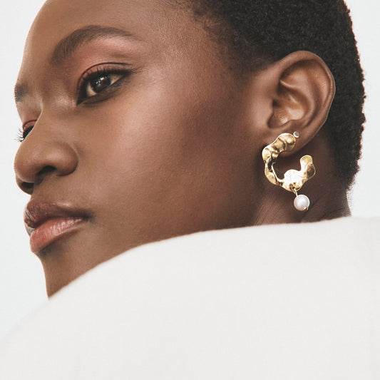 Boucles d'oreilles en étain avec perles concassées, argent 925 plaqué or jaune NOUVEAU ROMANTIQUE