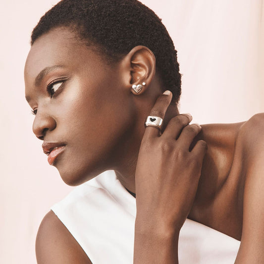 Boucles d'oreilles en forme de cœur potelé, argent sterling 925, platine NOUVEAU ROMANTIQUE