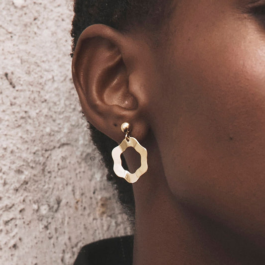 Boucles d'oreilles fleurs en argent avec plis, argent 925 plaqué or jaune NEW ROMANTIC