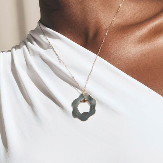 Collier cœur asymétrique noir en résine, argent 925 plaqué or jaune NOUVEAU ROMANTIQUE