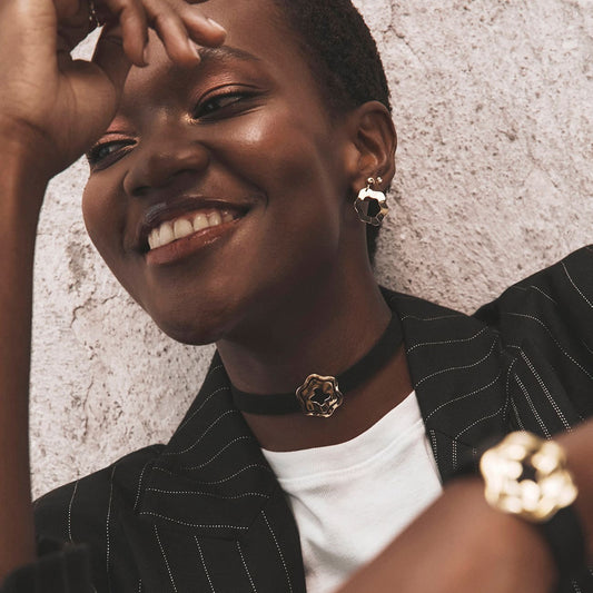 Boucles d'oreilles fleurs en résine noire, argent sterling 925 plaqué or jaune NOUVEAU ROMANTIQUE