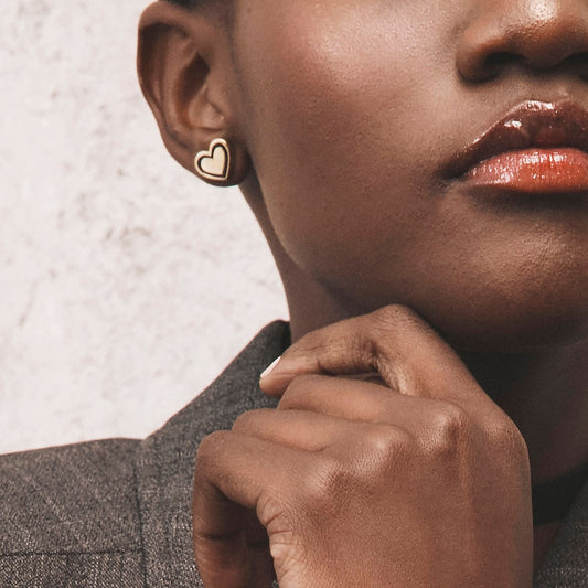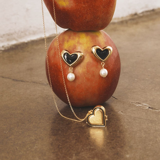 Boucles d'oreilles coeur en résine noire, argent 925 plaqué or jaune NOUVEAU ROMANTIQUE