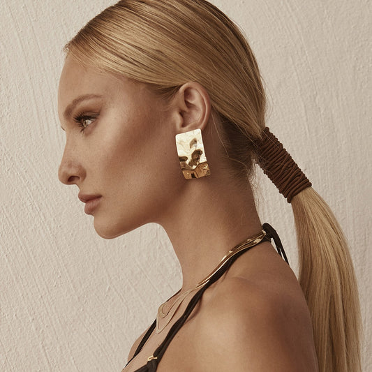 Boucles d'oreilles rectangulaires martelées, argent 925, XENIA x GIORRE plaqué or jaune