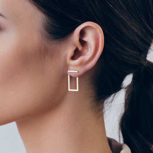 Boucles d'oreilles rectangulaires, argent 925 plaqué or jaune