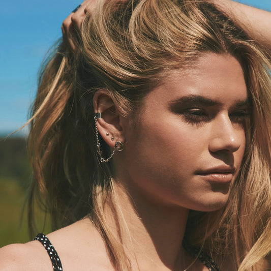 Manchette d'oreille avec chaîne - globe, argent 925 plaqué or jaune TRAVEL