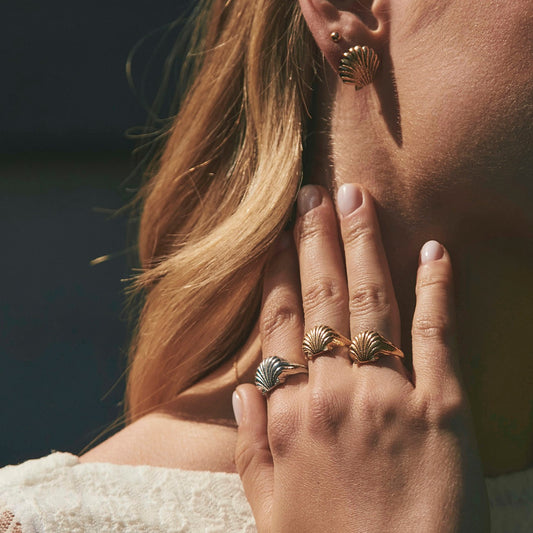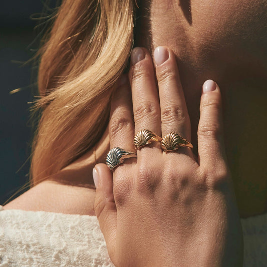 Chevalière coquillage, argent 925 plaqué or VOYAGE