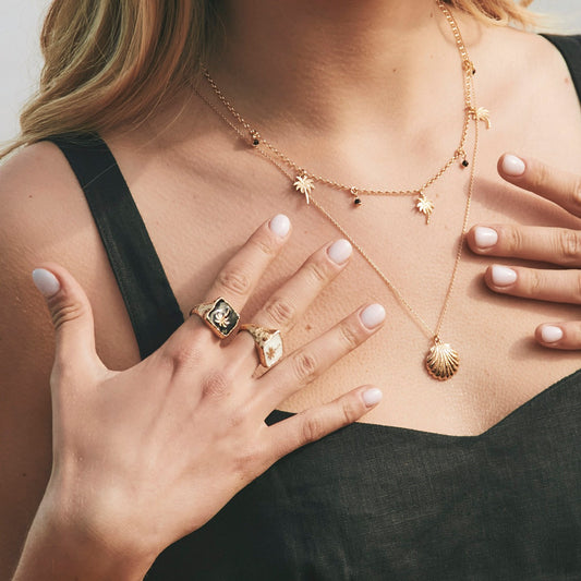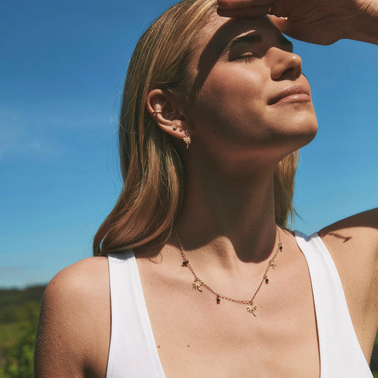 Collier palmier avec spinelle noir, argent 925 plaqué or VOYAGE