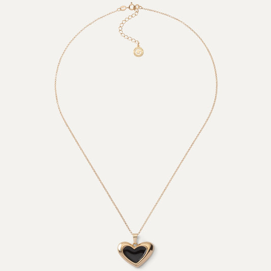 Collier coeur noir en résine, argent 925 plaqué or jaune NOUVEAU ROMANTIQUE